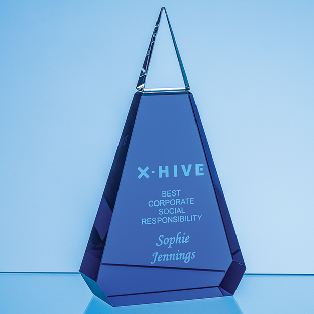 20.5cm Cobalt Blue & Clear Optical Crystal Prism Award