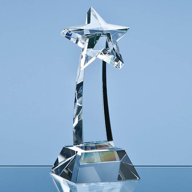 The elegant and very stylish Shooting Star awards are hand crafted out of perfectly clear optical crystal. Available in 3 sizes they would make ideal recognition, achievement or incentive gifts for people who shine within your organisation. They can be personalised with any crest, logo or wording to create an award that is sure to take pride of place when put on display at home or at work. They are supplied in a black foam lined presentation box.