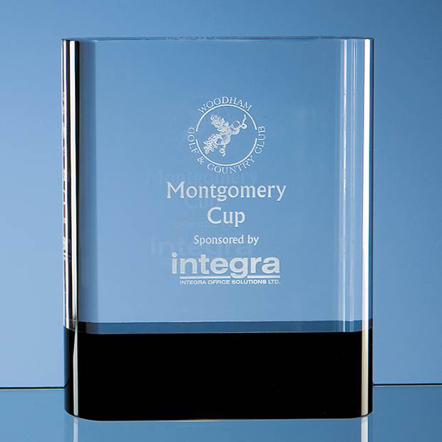 The 15.5cm Optical Crystal Rectangle is hand crafted out of perfectly clear optical crystal and onyx black crystal to create this stylish and very popular award. It benefits from a large engraving area that can be personalised with 2D or 3D engraving, sandblast engraving or full colour printing with any crest, logo or wording to create an award that is sure to take pride of place when put on display at home or at work. It is supplied in a black foam lined presentation box.
