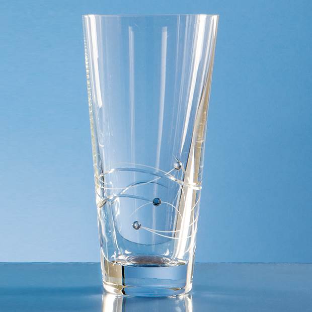 This conical vase has a spiral detail with 3 Swarovski crystals bonded to the side of the vase. There is an engraving area that can be personalised with any logo, crest or wording making it the perfect keepsake gift for any special occasion or achievement. The vase is also available in 25cm and 30cm and is supplied in an attractive Gift Box.