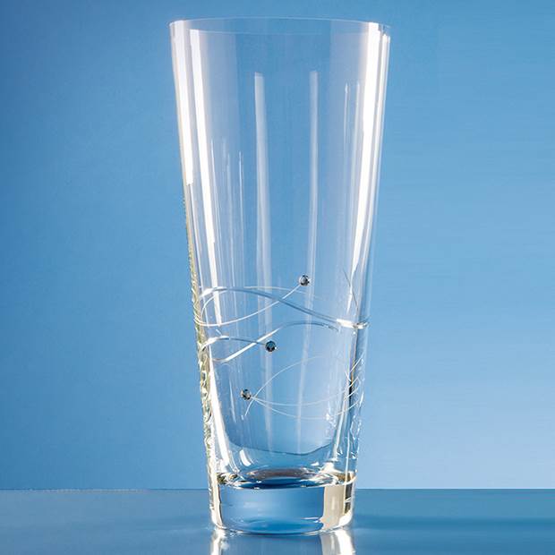 This conical vase has a spiral detail with 3 Swarovski crystals bonded to the side of the vase. There is an engraving area that can be personalised with any logo, crest or wording making it the perfect keepsake gift for any special occasion or achievement. The vase is also available in 22cm and 25cm and is supplied in an attractive Gift Box.