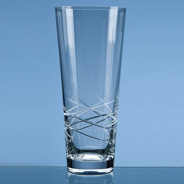 The contemporary style of the 30cm Tiesto conical vase is enhanced with a stylish cut pattern around the base of the vase. There is a large engraving area that can be personalised with any crest, logo or wording to create a gift that is sure to be treasured by the recipient. The Tiesto vases are available in 3 sizes making them perfect for 1st, 2nd and 3rd place competition prizes. The vase is supplied in an attractive gift box.
