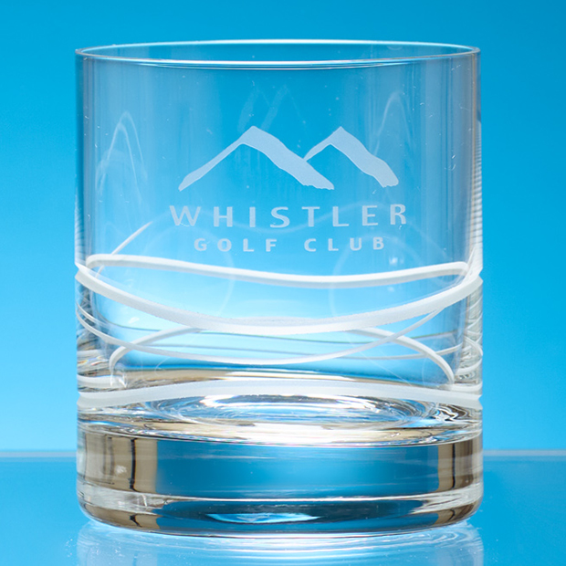 The heavy based lead crystal Verona whisky tumbler is elegant in design and modern in appearance with a contemporary wave pattern cut around the side of the tumbler. Despite the cutting there is still plenty of room to personalise the tumbler with any crest, logo or wording to create a gift that is sure to take pride of place when put on display at home or at work. Please note the cutting on the glass now has frosted cutting rather than polished cutting.