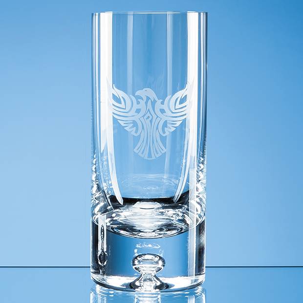 The handmade bubble base high ball is a simple modern style with a solid base and a large engraving area. It is perfect for corporate events or as a personalised gift that will be treasured. It can be personalised with any logo, crest or wording and would not look out of place at business events or special occasions.